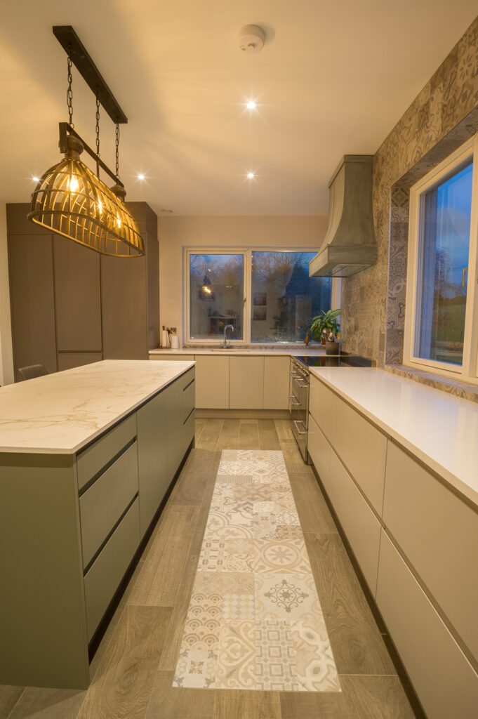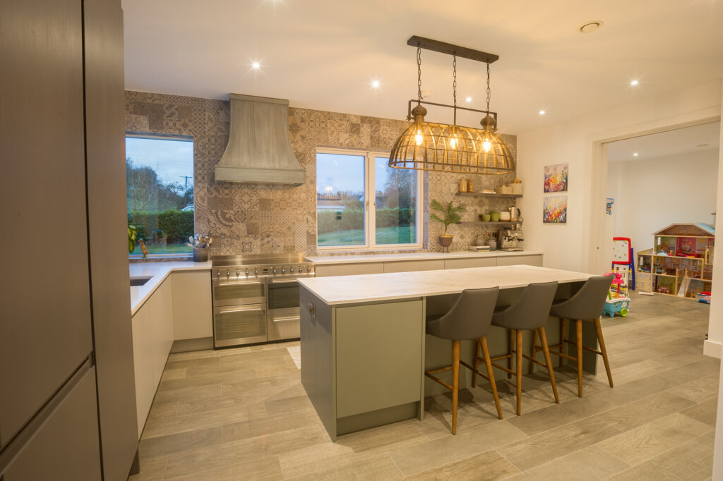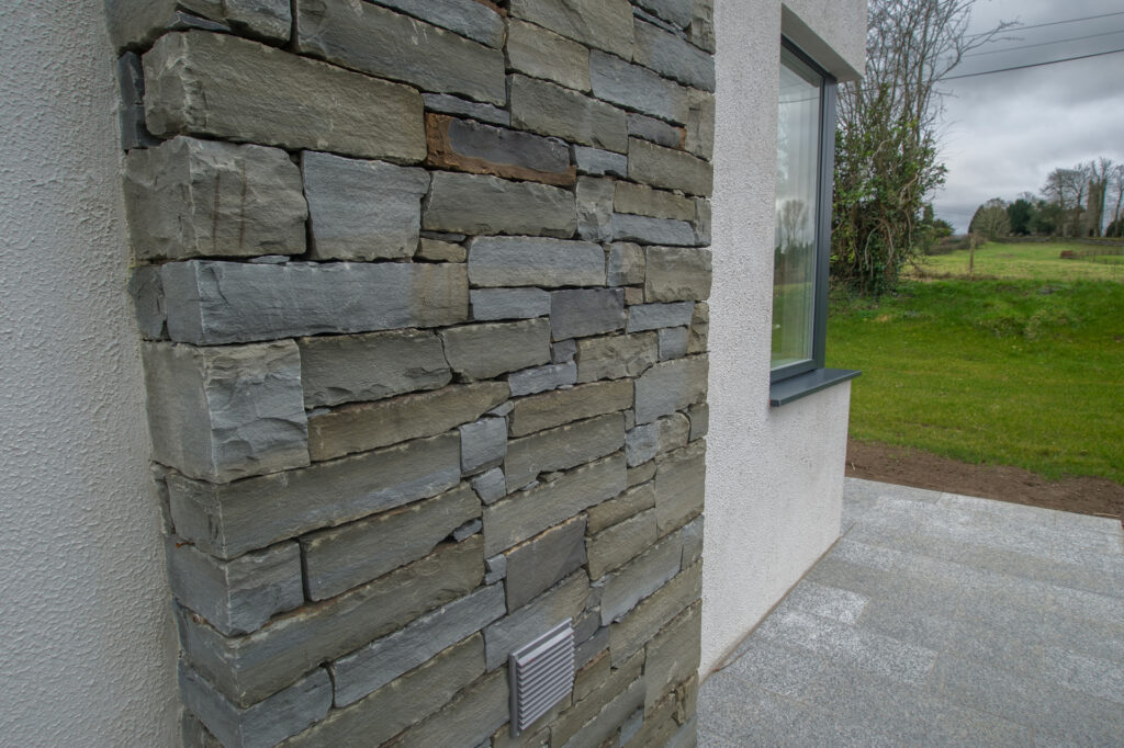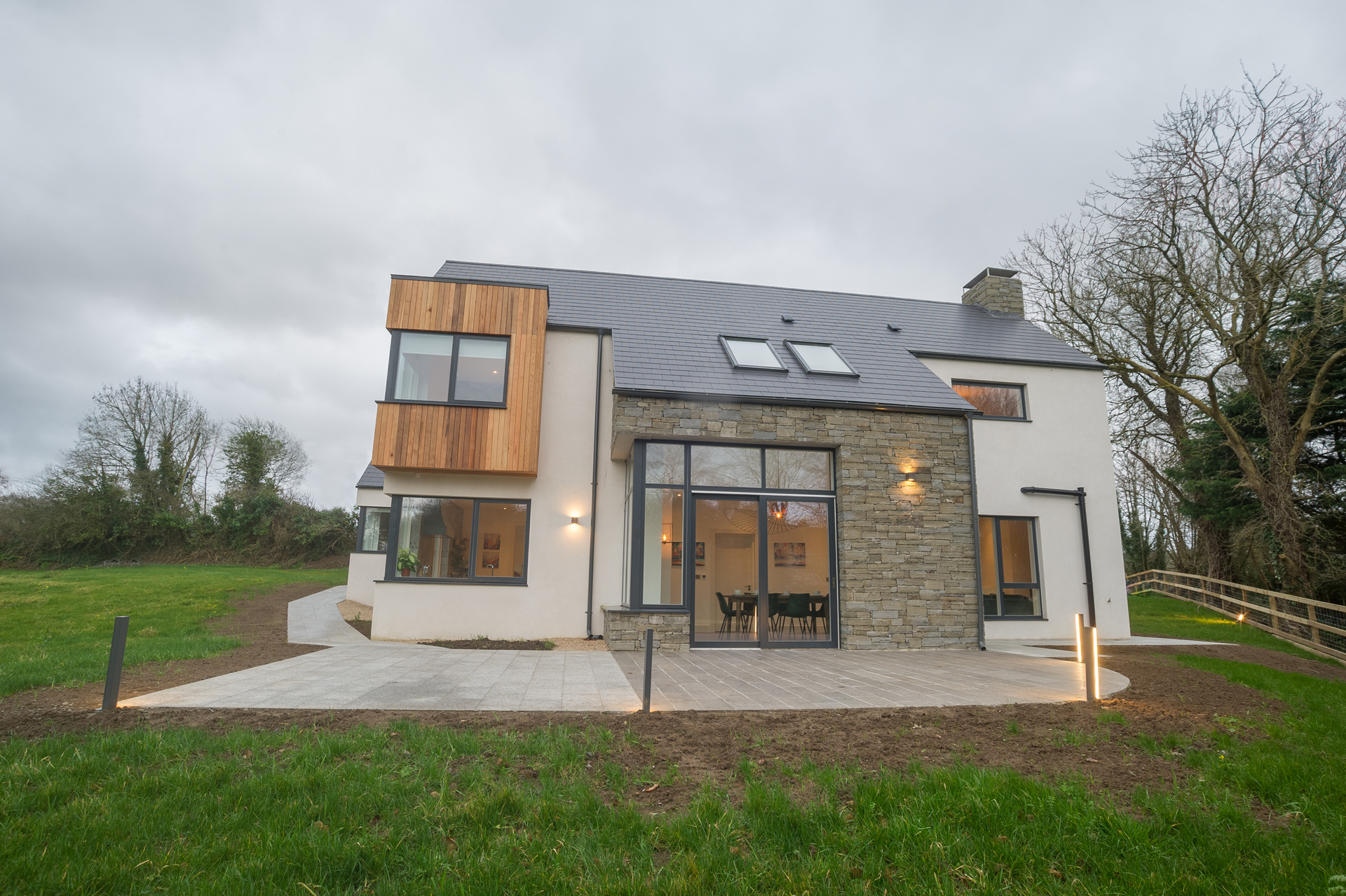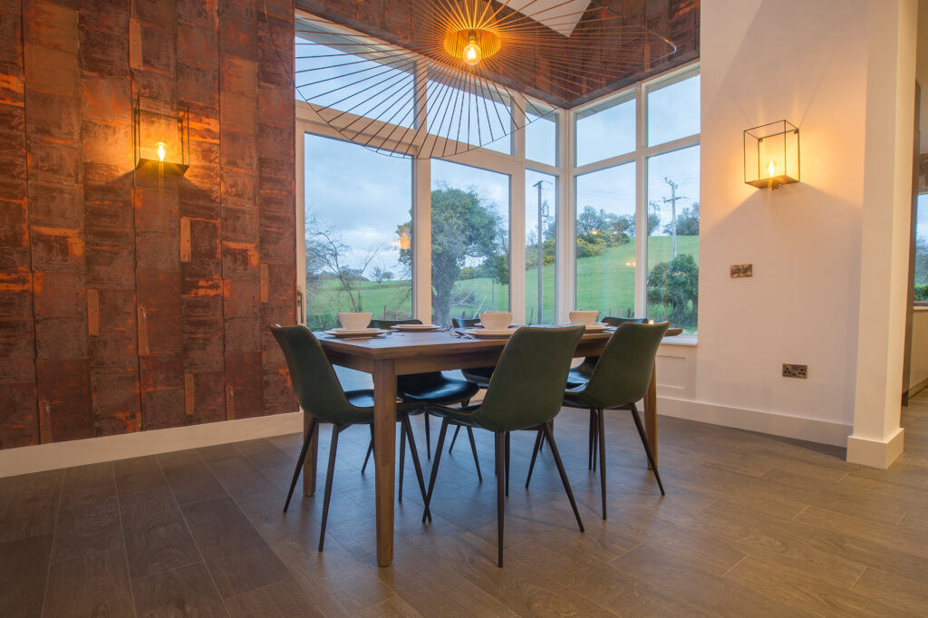 Inspired by traditional Irish architecture, the design features strong gable walls, simple forms, and a restrained material palette. A standout element is the cantilevered corner window in the master bedroom, framing panoramic views of the Wicklow Mountains and introducing a contemporary touch to the otherwise vernacular-inspired home.