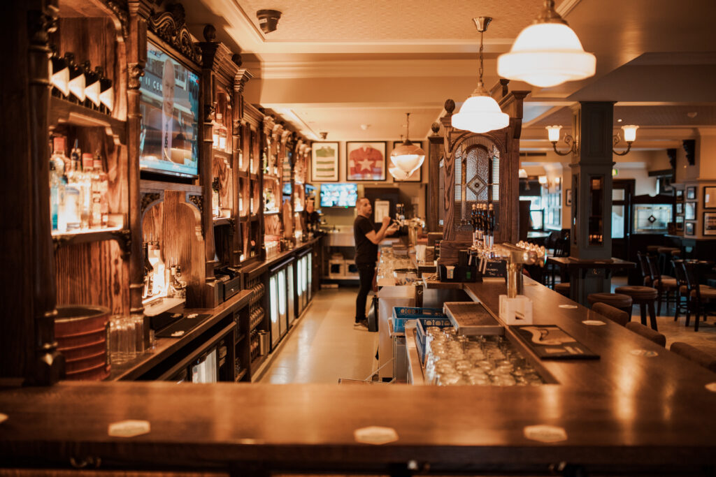 Inside, the entire venue was reimagined with bespoke finishes that elevate its historic charm. The handcrafted bar, rich timber detailing, and carefully curated lighting create an intimate yet dynamic setting. The layout was optimized for better circulation, enhancing the patron experience.