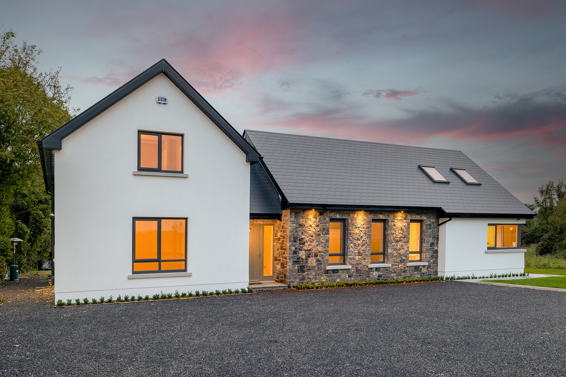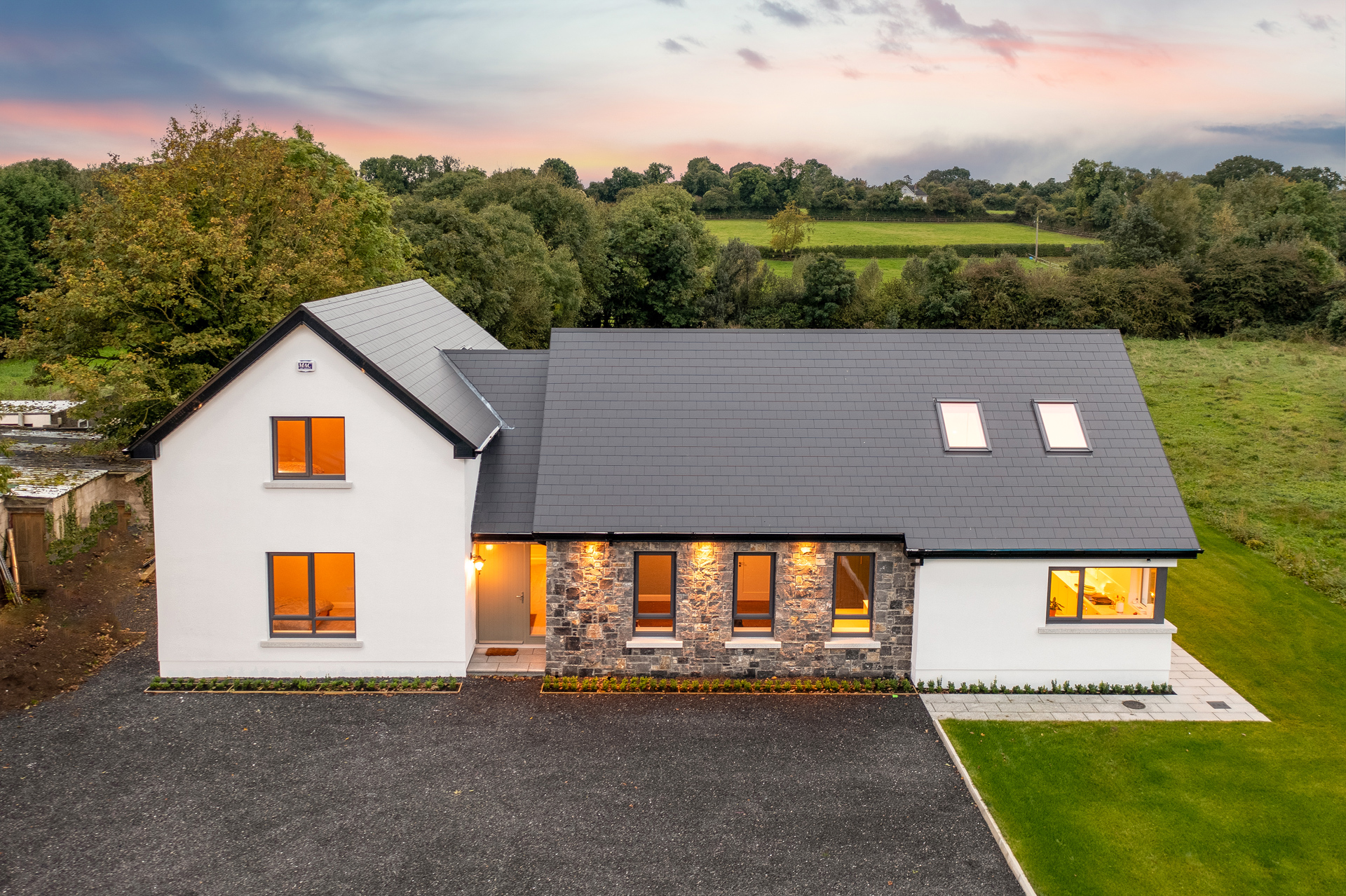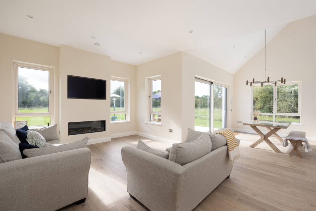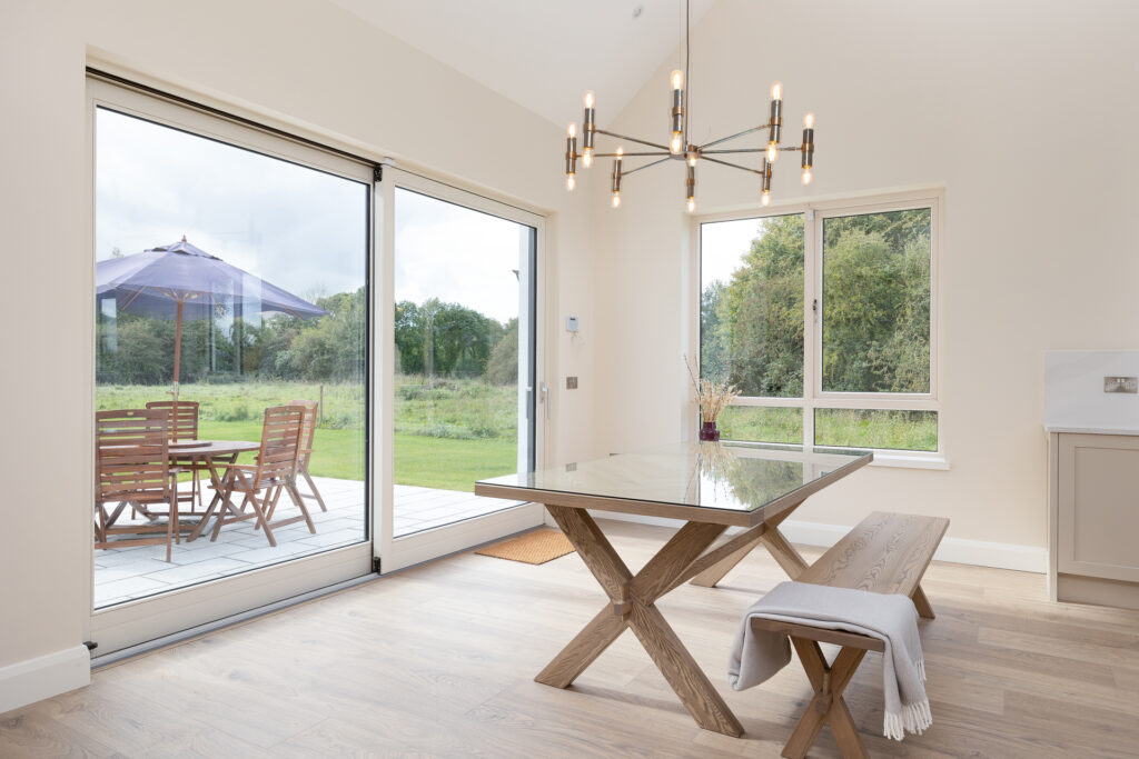 Externally, natural materials—stone, timber, and slate—were carefully selected to integrate the house within its rural setting. The result is a home that feels both timeless and contemporary, offering a harmonious balance between tradition and modernity while embracing the beauty of its natural environment.