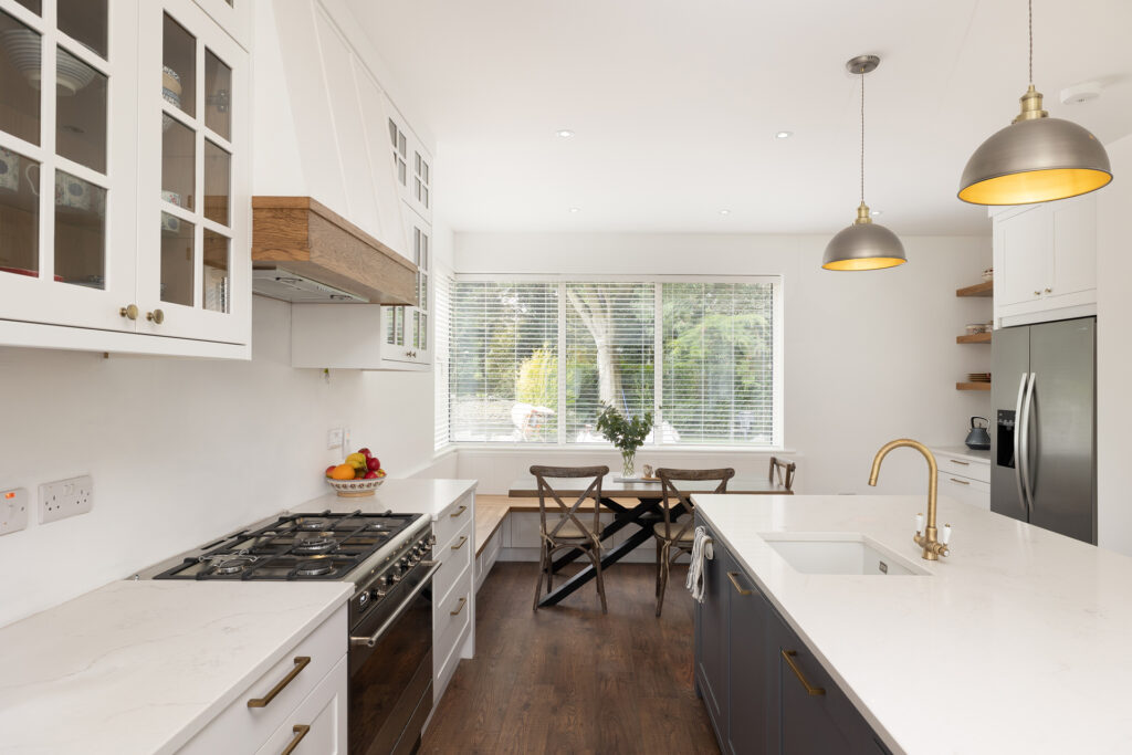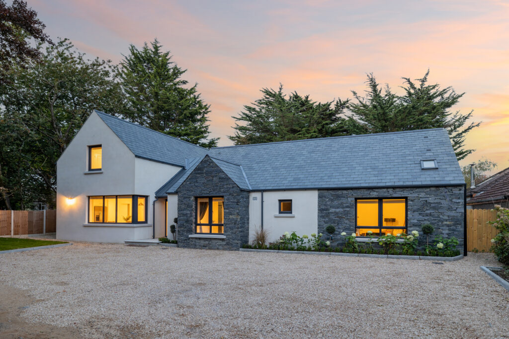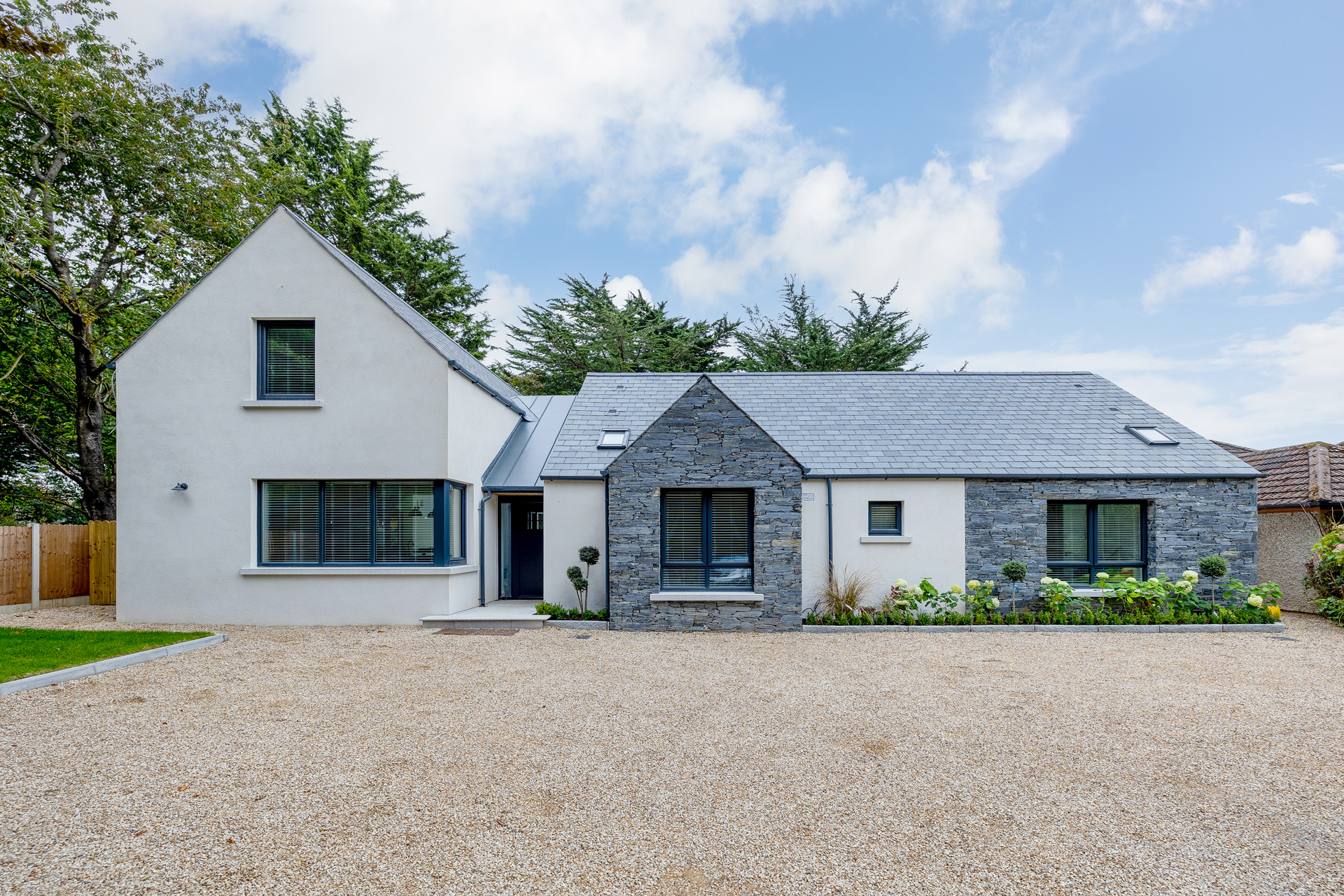 The front façade received a complete makeover, featuring natural stone cladding for timeless appeal. Re-proportioned windows and a new bay window add depth and visual interest.
