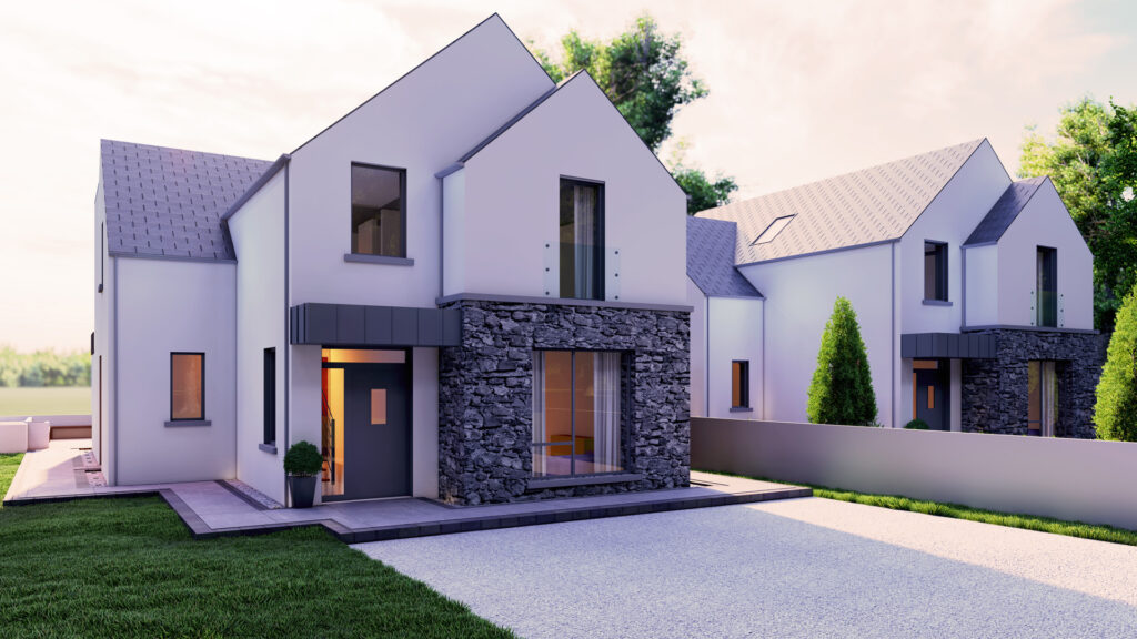 A significant design challenge was the site’s steep slope, requiring innovative solutions to ensure functional, high-quality homes that respond sensitively to the landscape. The project was granted planning approval by Wicklow County Council and is now under construction, set to deliver a well-considered and visually striking residential environment.